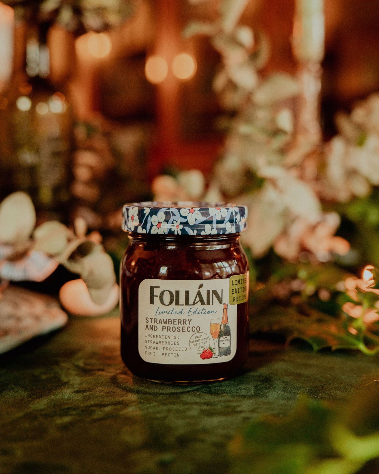 Strawberries 47%, Sugar, Prosecco 3%, Marc de Champagne, Gelling Agent: Fruit Pectin, Prepared with 47g of fruit per 100g & Sugar content 60g per 100g