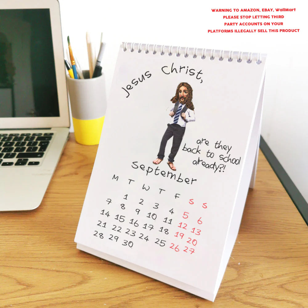 This A5 desktop calendar displays the original Jesus designs that were in Weirdwatercolours 2024 viral Jesus Christ What A Year Calendar.