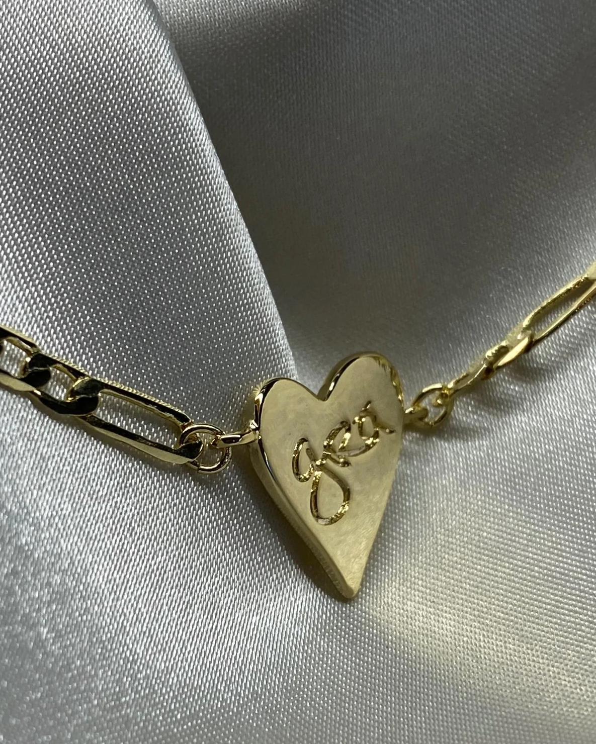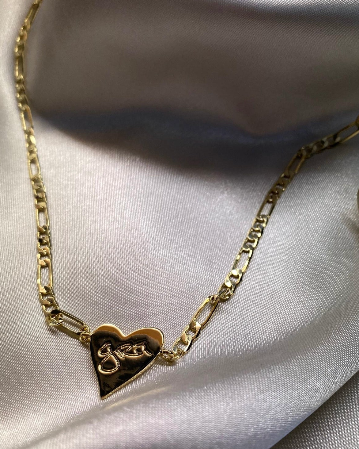 Grá letters engraved handwriting on a heart-shaped pendant