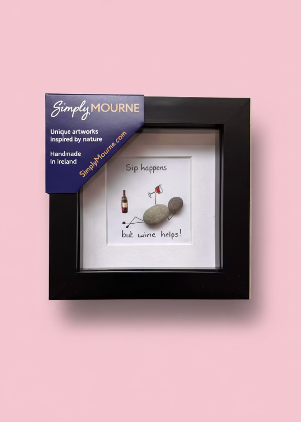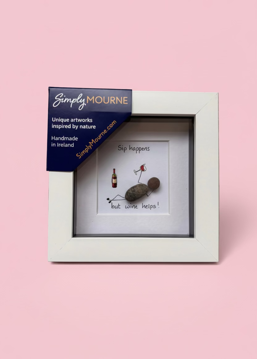 Sometimes life throws a few surprises our way… but thankfully wine helps! This Sip Happens but Wine Helps pebble art frame is a light-hearted design perfect for anyone who enjoys a good laugh and a glass of wine.