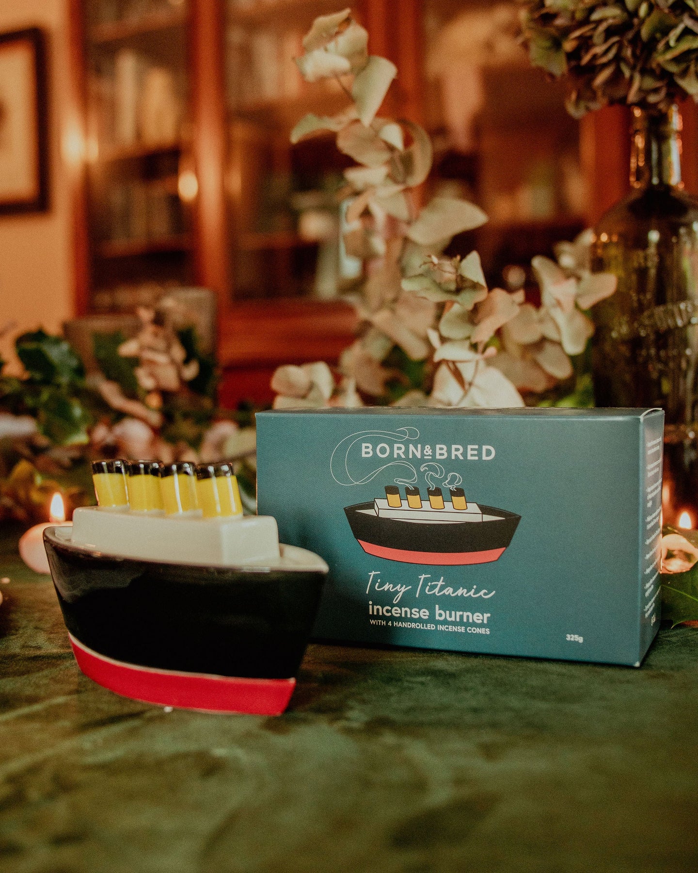 Set your cone on the base of your ship. Light the tip of the cone and allow to burn for 15 seconds, then gently blow out. Place the ship back on the base and enjoy your tiny Titanic as smoke gently curls out of its chimneys.